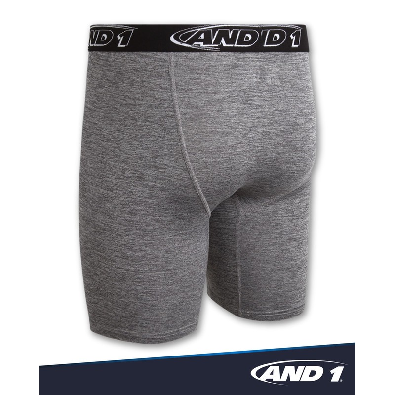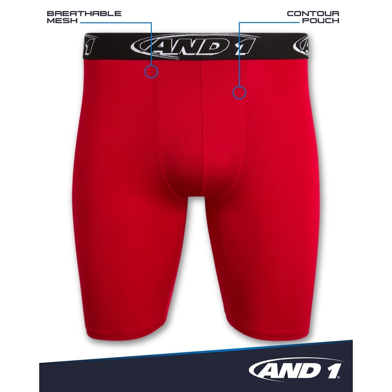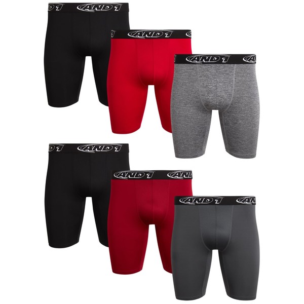 AND1 Mens Boxer Briefs - 6 Pack Stretch Long Leg Compression Underwear with Mesh Contour Pouch - Supportive Fit for Everyday Wear, Medium, Black/Red/Shadow/Charcoal Heather/Black