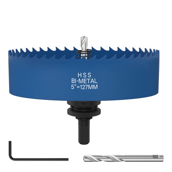 ANDELI 127MM | 5" Bi-Metal Hole Saw with Center Drill, to be Assembled, high Opening Efficiency for Wood, Corn Hole Boards, Plastic, plasterboard and Thin Sheet Metal Openings