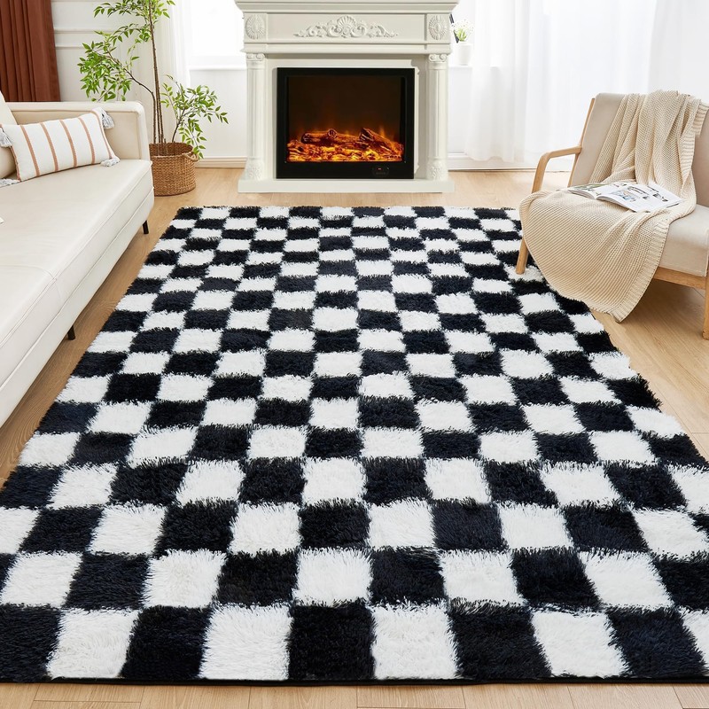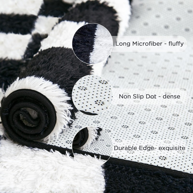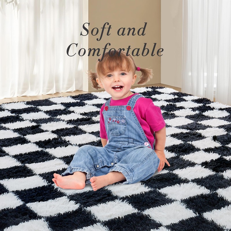 Andency 3x5 Ft Black and White Area Rug for Living Room Classic Checkered Shaggy Rug Non-Slip High Pile Soft Fluffy Rug Fuzzy Carpet Bedroom Kids Toddler Room Nursery Playroom, Cute Dorm Home Decor