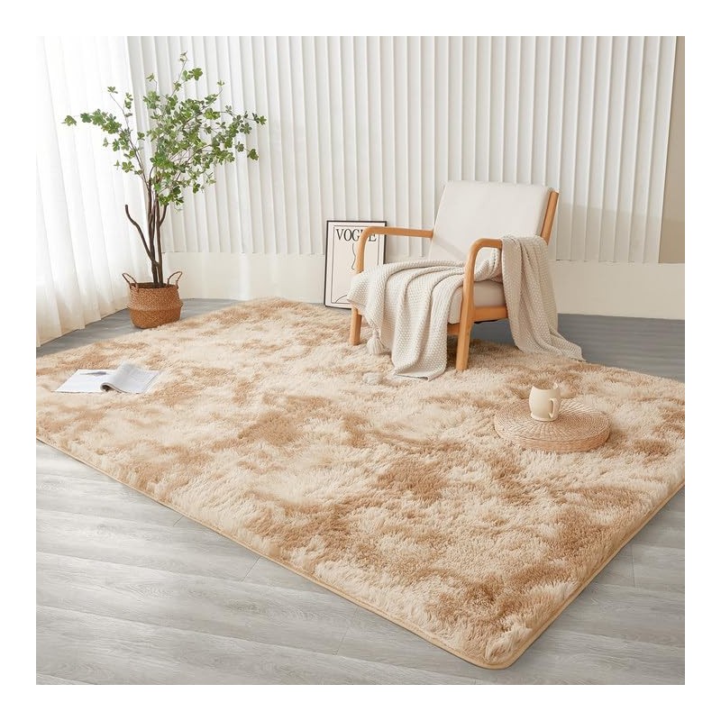 Andency 8x10 Shag Area Rug for Living Room, Tie-Dyed Beige Soft Fuzzy Plush Indoor Carpets for Bedroom, Non Skid Fluffy Faux Fur Rug for Room