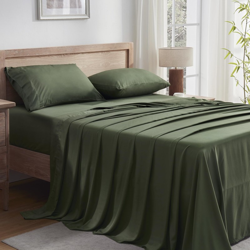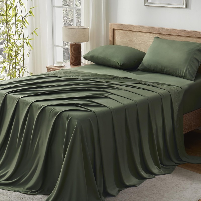 Andency Dark Olive Green Queen Sheets Set, 100% Viscose Derived from Bamboo, Cooling Bed Sheets Queen Size, Deep Pocket Up to 16", Silky Soft Sheets, Hotel Breathable Bedding Sheets & Pillowcases