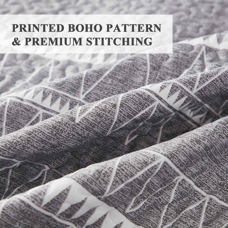 Andency Grey Quilt Set King (106x96 Inch), 3 Pieces(1 Striped Triangle Printed Quilt and 2 Pillowcases), Bohemian Summer Lightweight Reversible Microfiber Bedspread Coverlet Sets