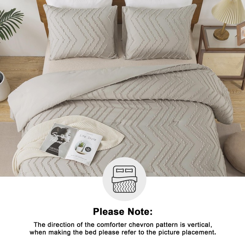 Andency Linen Comforter Set Twin Size, Boho Soft Warm Tufted Bedding Comforter Sets for Twin Size Bed, 3 Pieces Aesthetic Chevron Farmhouse Cute Bohemian Textured Bed Set