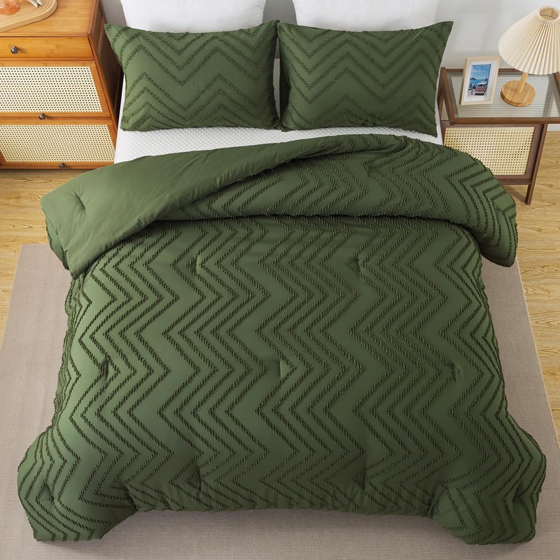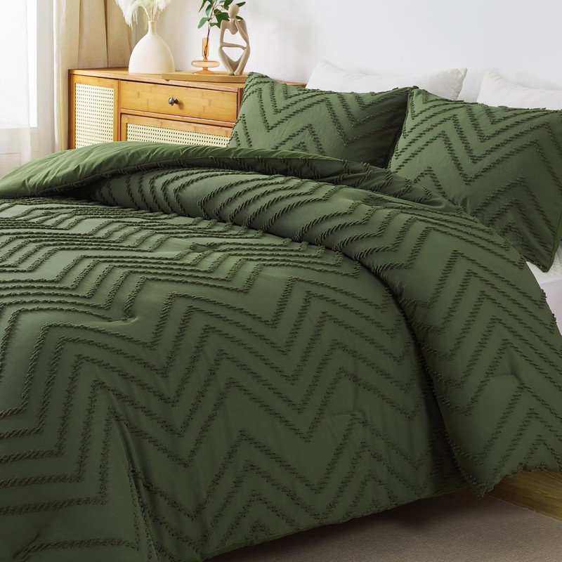 - 【Elegant Home Decor】: Clean simple tufted geometric lines instantly give your bedding a modern refresh. The solid hue of the olive comforter set adds an extra layer of style and versatility, making it easy to coordinate and integrate with your room’s décor.