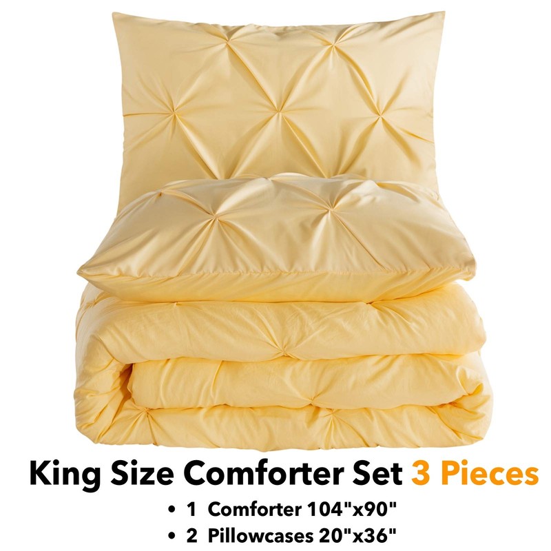 - PINCH PLEAT COMFORTER SET: Pintuck style, modern and fashionable. Decorate your bed with this pinch pleat microfiber comforter set, bring your room lavish and elegant atmosphere. Classic yellow comforter set coordinates easily with your existing room decorations. Beauty and function are perfectly integrated with this pinch pleat comforter set.