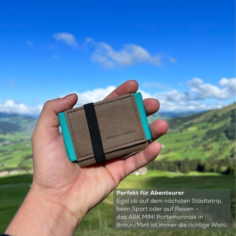 Anders & Komisch Mini Wallet with Coin Compartment, Card Holder, Men's Small Wallet, Women's Slim Wallet, Sustainable Wallet, Handmade from Germany, Brown/mint, Mini Wallet Slim Wallet Small Purse