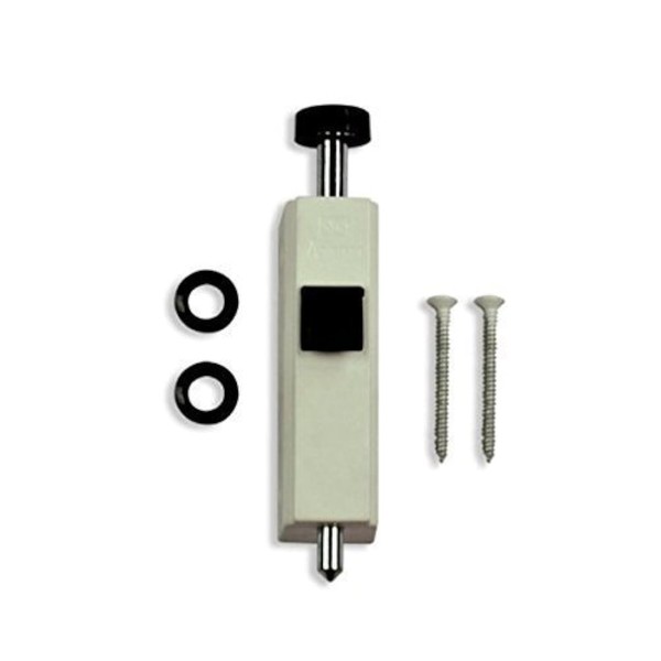 Andersen Frenchwood Gliding Door Auxiliary Security Foot Bolt Lock in White For Andersen 200 and 400 series gliding patio doors. This lock Mounts to bottom of active door panel and allows partial ventilation when door is open. Item Sold as Kit; Kit Includes: 1 - Lock 2 - Grommets 2 - 2 Wood Screws