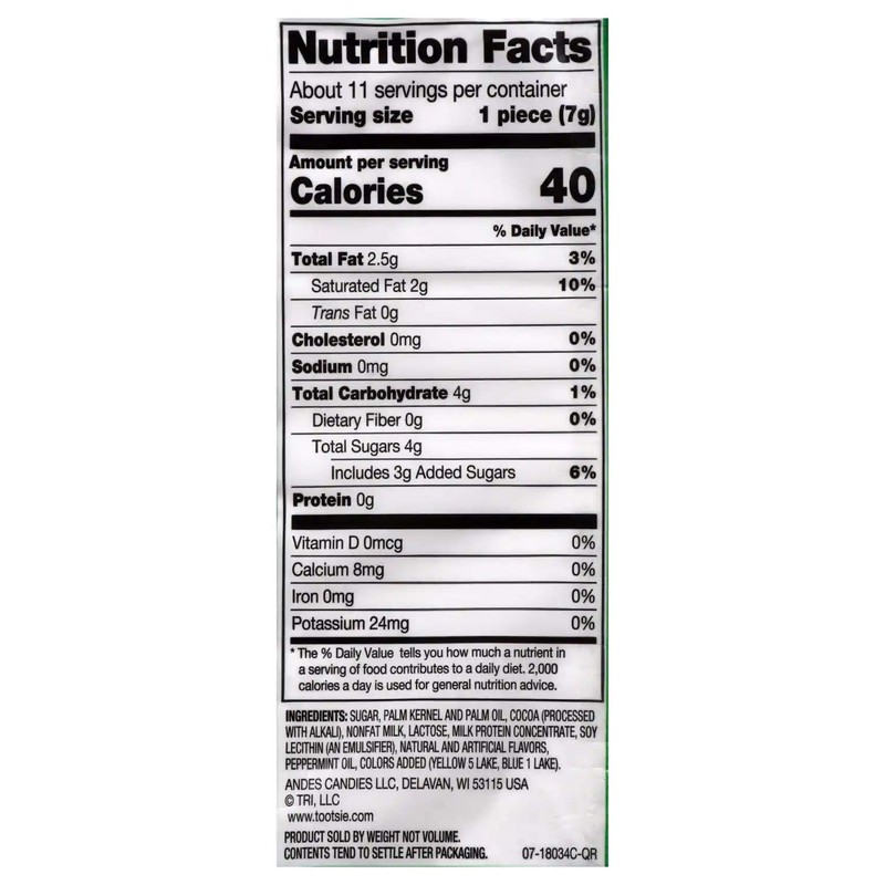 Andes (1) Bag Creme De Menthe Thins - Individually Wrapped Mint & Dark Chocolate Candy Pieces - Peanut Free & Gluten Free - Net Wt. 2.75 oz