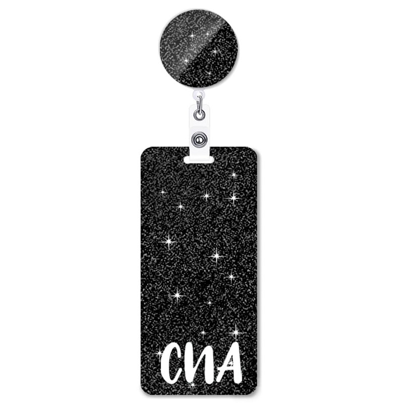 ANDGING CNA Badge and Reel Set - Glitter Vertical Buddy for Nurses, Retractable Black Reels, Medical Card Holder, Nursing Gifts, ID Name A8816
