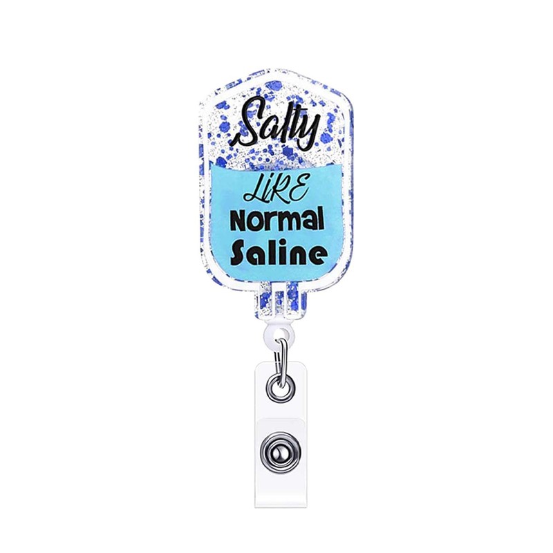 ANDGING Funny Badge Reels Retractable for Nurses, Salty Like Normal Saline Nursing Badge Reel Holder Acrylic Cute Badge Clips, RN LPN CNA LVN Medical Nursing ID Name Card Badge Office Accessories