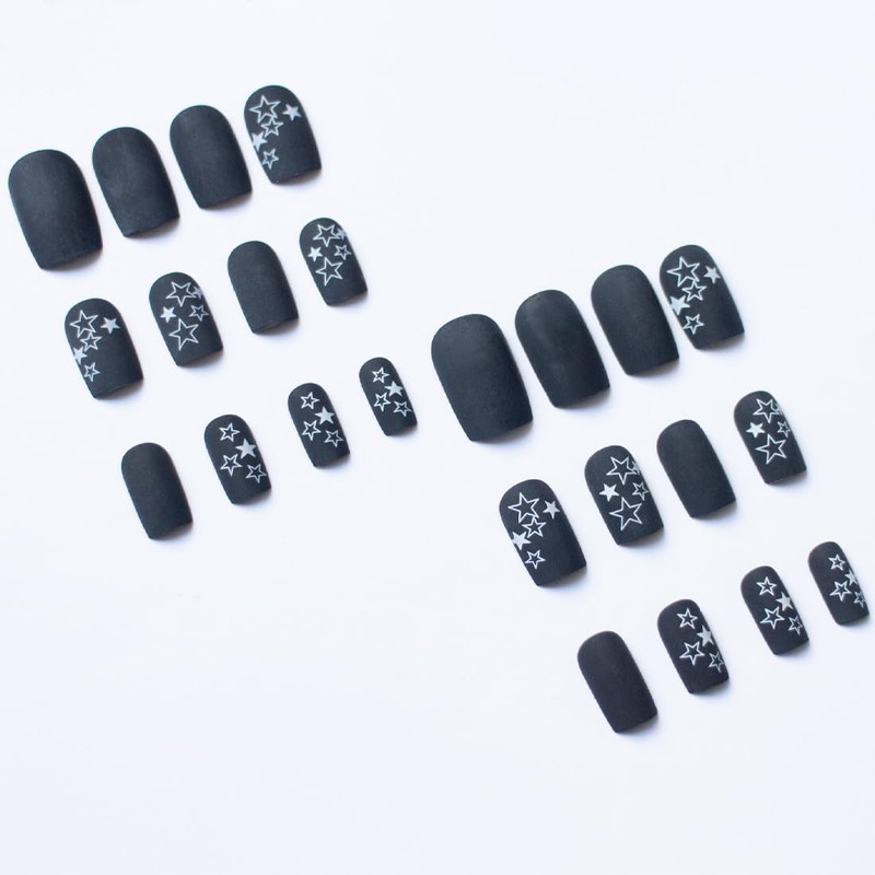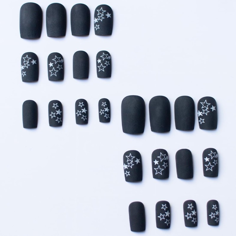 ANDGING Matte Black Press on Nails Short Medium Square Glue on Nails for Women Fake Nails with Star Aesthetic Designs Manicure Stick on Nails Acrylic Gel Artificial False Nails for Wedding
