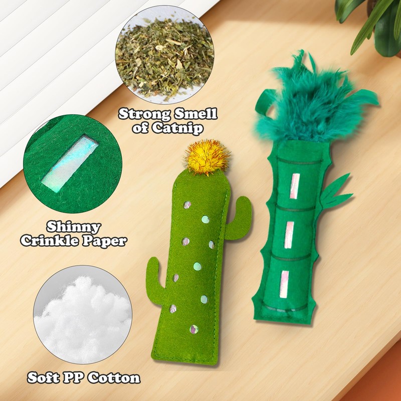 Andiker Catnip Toy for Cats, Cute Bamboo Shapes with Soft PP Cotton Bite-Resistant Cat Chew Toy with Catnip and Crinkle Paper Entertaining Interactive Cat Toy for Indoor Cats and Kitten (Bamboo)