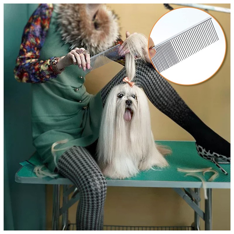 - 5. The metal comb has two types of density. Fun teeth can open the knotted hair, suitable for combing a large area of fluffy hair. The dense tooth can comb the soft hair of the eyes, ears and legs.