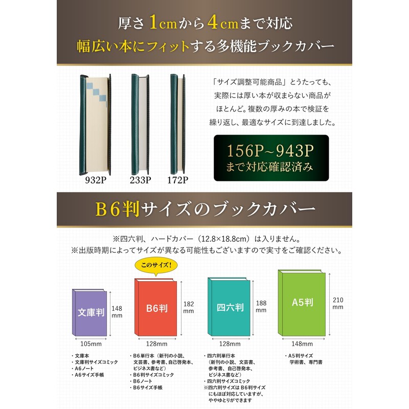 - Compatible book types: B6 single books (new-written novels, literary books, reference books, self-awareness books, business books, etc.), B6 size comics, B6 notebook, B6 size notebook, B6 size notebook, *5.0 x 7.2 inches (128 x 182 cm) B6 size book cover. Does not fit 46 size, hard cover (5 x 7.4 inches / 12.8 x 18.8 cm). Size may vary depending on the publishing period, so please check the actual size
