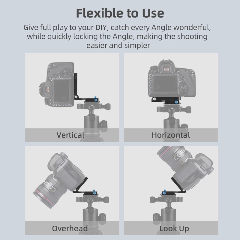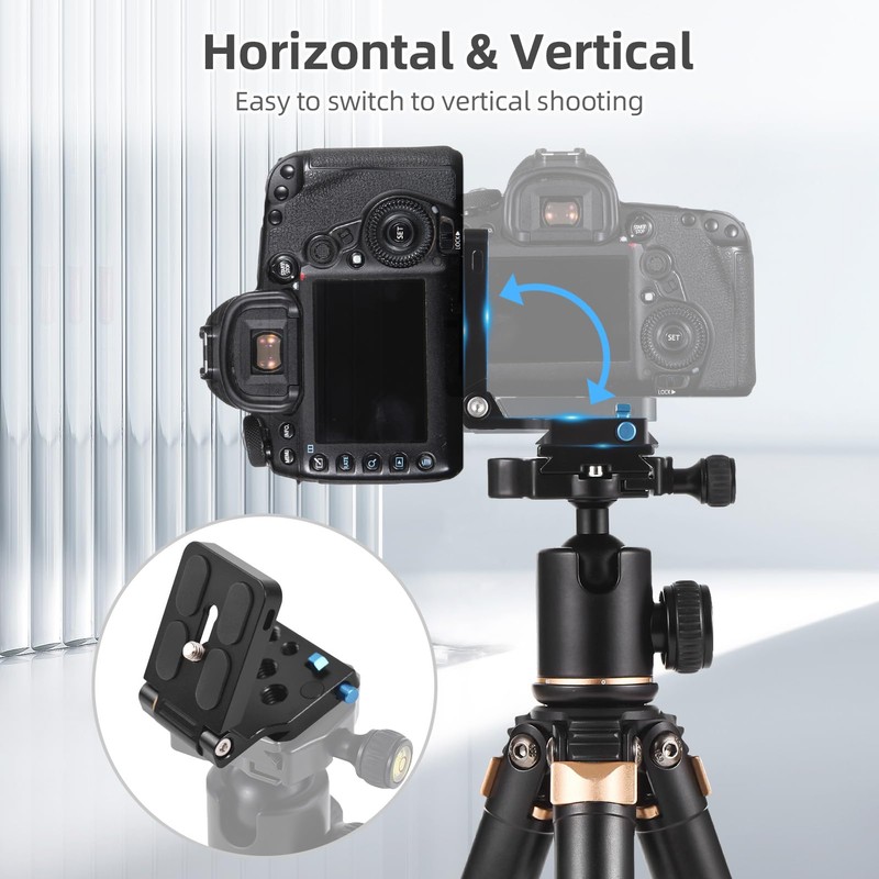 - 【Versatile Compatibility】This L-shaped Quick Release Plate features a standard 1/4 inch screw, making it compatible with most DSLR cameras for seamless attachment.