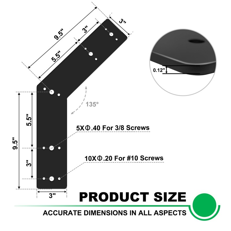 - Size of 135 Degree Angle Pergola Bracket : 10Lx3Wx1/8T inch(Please refer to size map for details)
