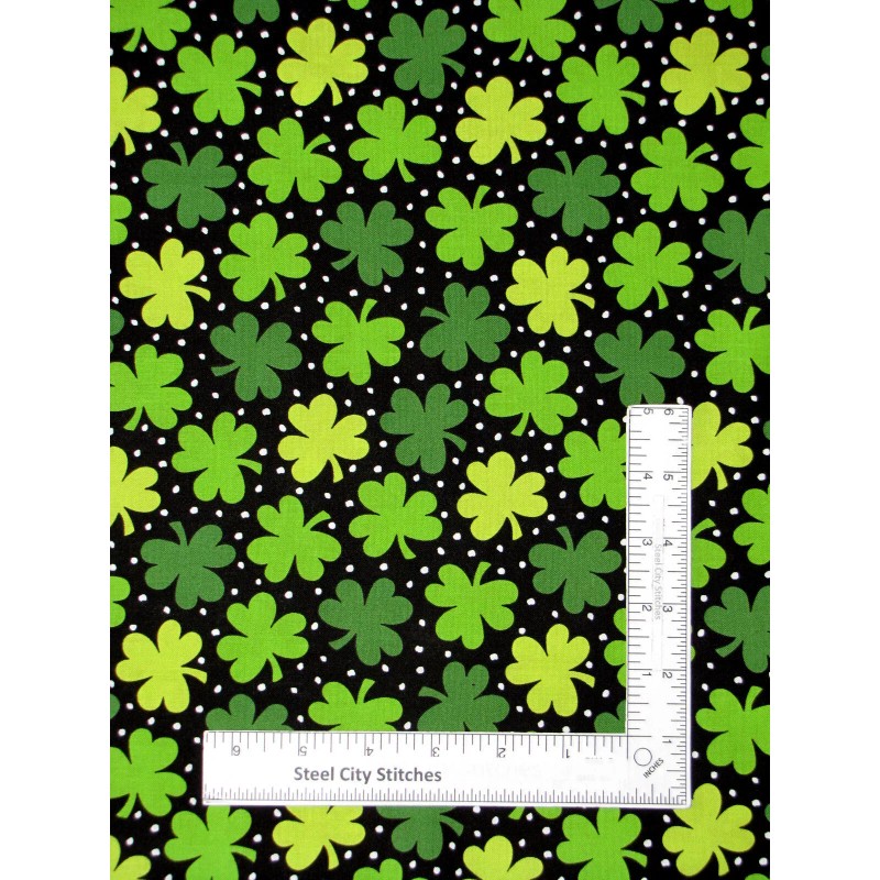 Andover St Patricks Fabric Clover Shamrock Black Threes A Charm Cotton Andove...