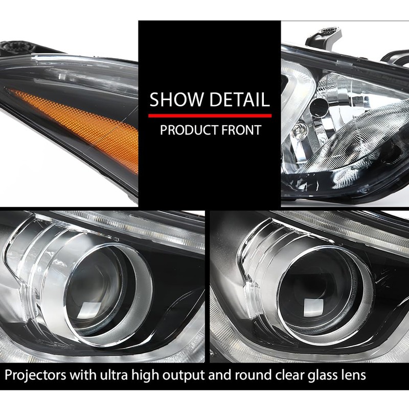 ANDPLAY DRL LED Projector Headlights Assembly Left & Right Side Pair Compatible with Hyundai Elantra 2014-2016 Front Headlamps Clear Lens Black Housing Amber Reflector HY2503186, HY2502186