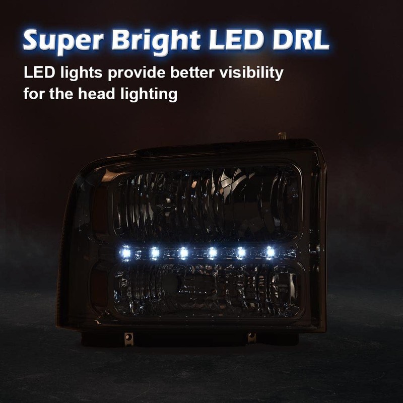ANDPLAY LED DRL Headlights Assembly, Compatible with 2005 2006 2007 Ford F250 F350 F450 F550 Super Duty bumper Headlamp, Amber Corner Headlight(Smoky lens Chrome Housing Amber Reflector)