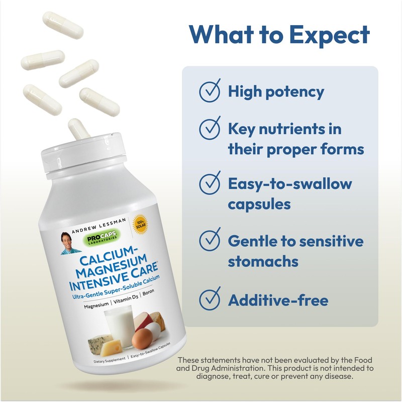 ANDREW LESSMAN Calcium Magnesium Intensive Care 60 Capsules - Bone and Skeleton Health Essentials. Easy to Swallow Capsules, Super Soluble Fine Powder. Gentle to Even The Most Sensitive Stomachs