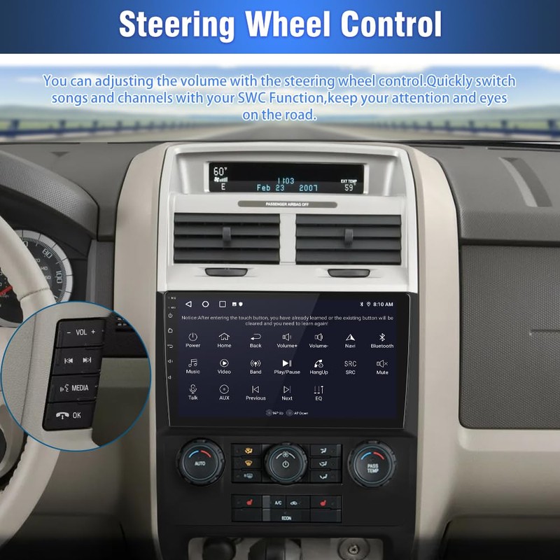 Suitable for Ford Escape 2007 2008 2009 2010 2011 2012, Android 13 system brings you a smoother experience and the HD screen brings you a clear visual experience. Support wireless CarPlay and Android Auto.