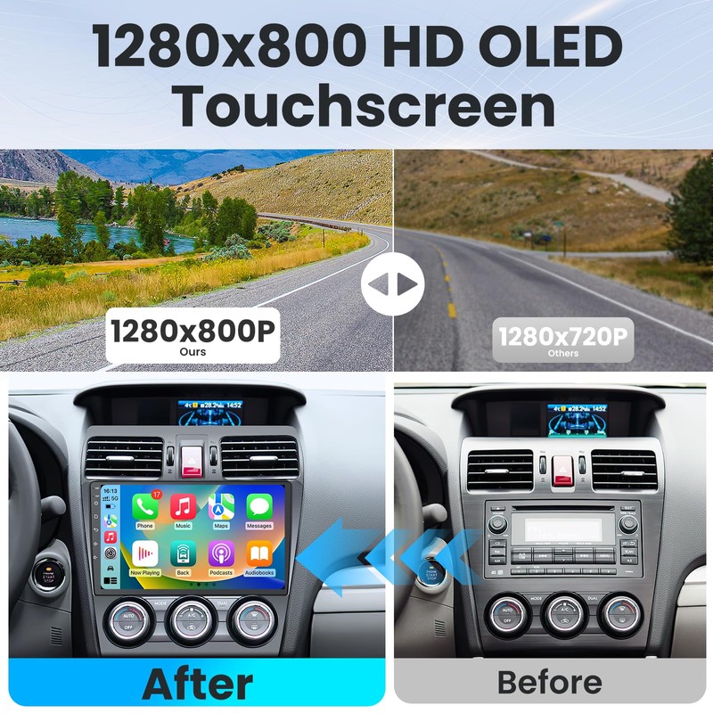- 【CarPlay & Android Auto】This perfect replacement screen for Subaru Forester compatible with wired and wireless CarPlay and Android Auto,enabling seamless integration of your phone's apps,support voice control Siri or Goo-gle Assistant to help you access map navigation, phone, music, notifications, messages and more.Say goodbye to distraction.