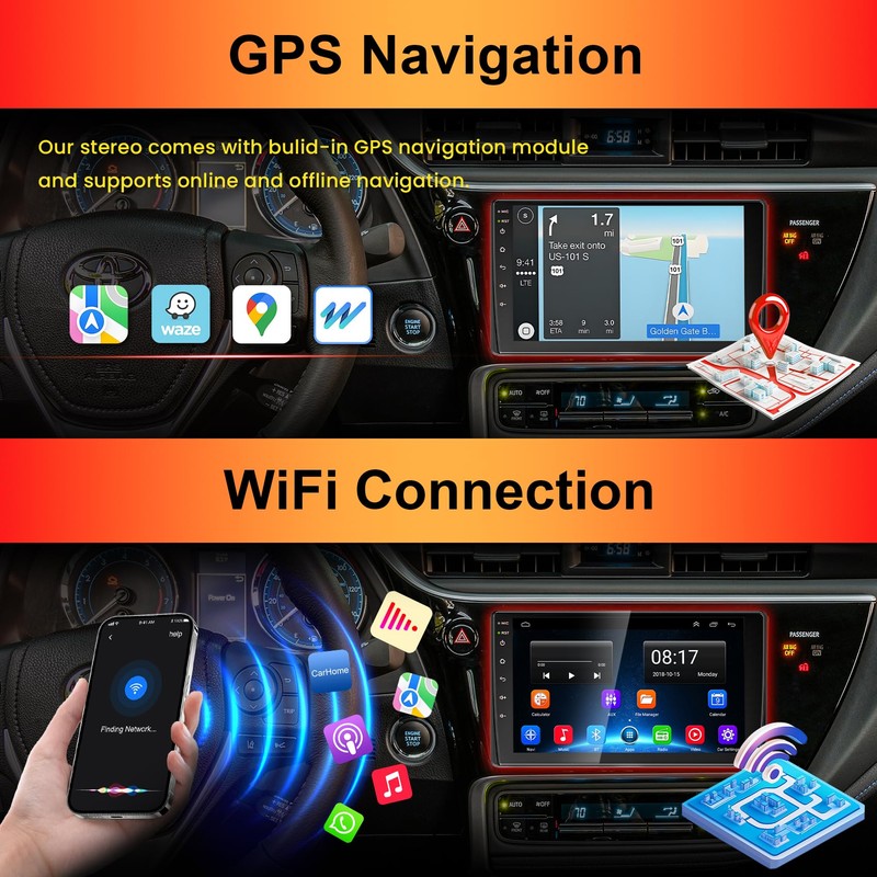 - 【GPS Navigation & WiFi Connectivity】Car stereo for Toyota Corolla features a dual navigation system that supports both offline and online maps. This enables safe driving even in areas with weak or no cell reception. Additionally, by connecting to WiFi, you can access various phone functions directly on the Android car stereo, enhancing convenience and connectivity