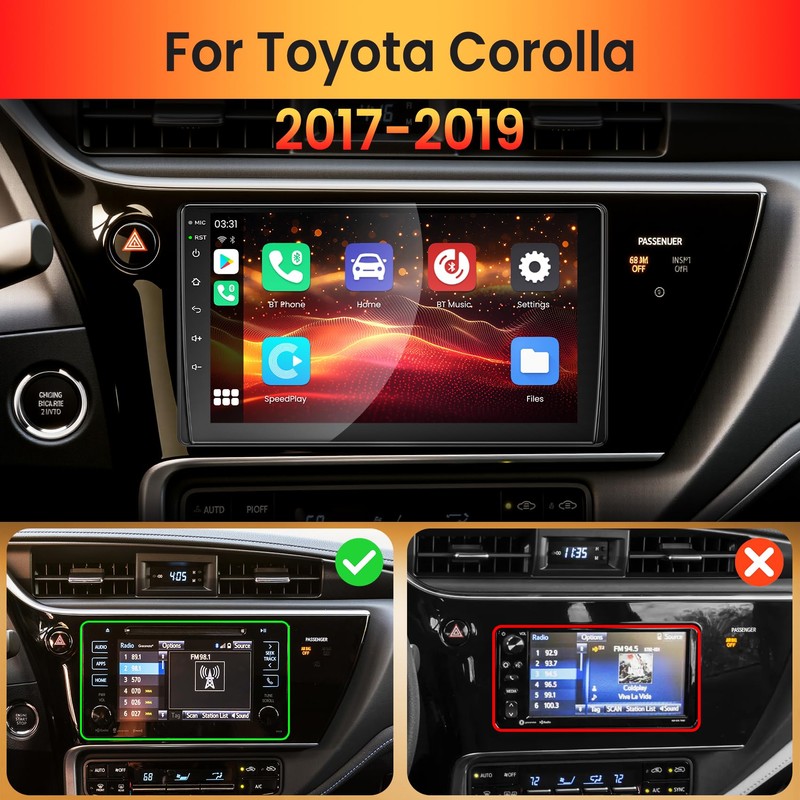 - 【Applicable Models】The radio is compatible with Original Style Car radio For Toyota Corolla 2017 2018 2019. Please check the year, dimensions and shape of the center console of your vehicles before purchasing. If you are not sure, you can send messages or picture to us, we will give you advice【Note:it is not support OEM original camera】
