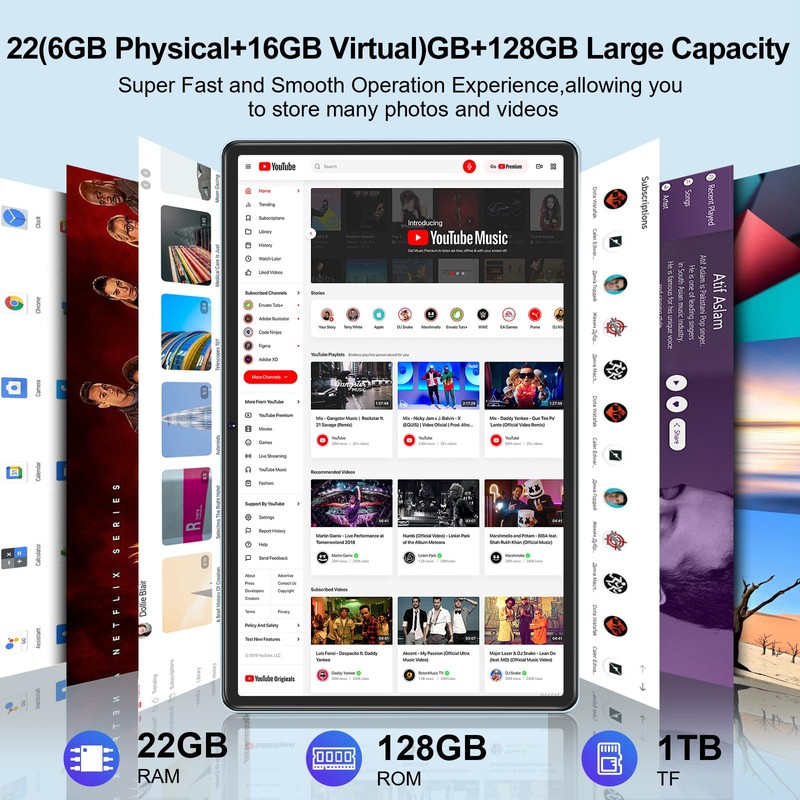 • 【22GB RAM + 128GB ROM + 1TB Memory Expansion】 20GB ( 6GB Original + 14GB Virtual ) RAM + 128GB ROM, it is able to run various apps compatibly and smoothly, and store you favorite everything directly from the pre-installed play store to meet your diverse learning and entertainment needs.Support up to 1TB of microSD card expansion for additional storage space when you need.