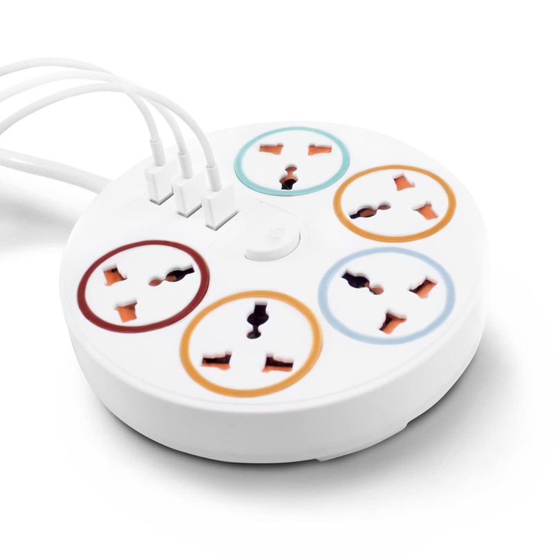 Andromeda Inc Multicontacto Circular regleta eléctrica 8 en 1 USB Conector Multiple Universal
