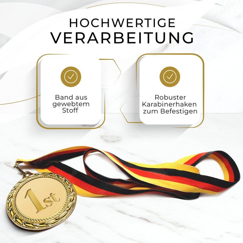 • Shiny surface and classic design: our engraved medals impress with their permanently shiny surface and a timeless, gold-coloured design.