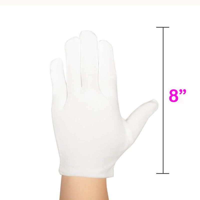 - ★ One size fits most. ★ These white fabric gloves are 8 in XL long enough for men and women and can cover your wrist, ideal for moisturising.