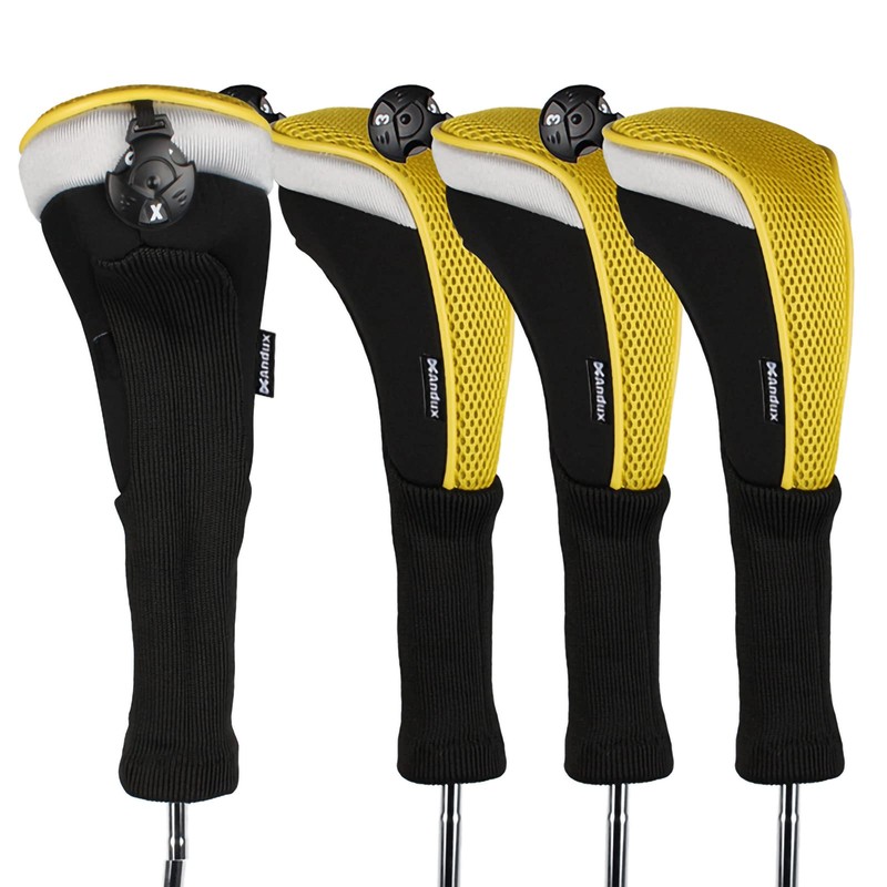 Andux ロングネック ゴルフ ハイブリッド クラブヘッドカバー 交換可能な番号タグ付き 4個セット CTMT-02 (イエロー)