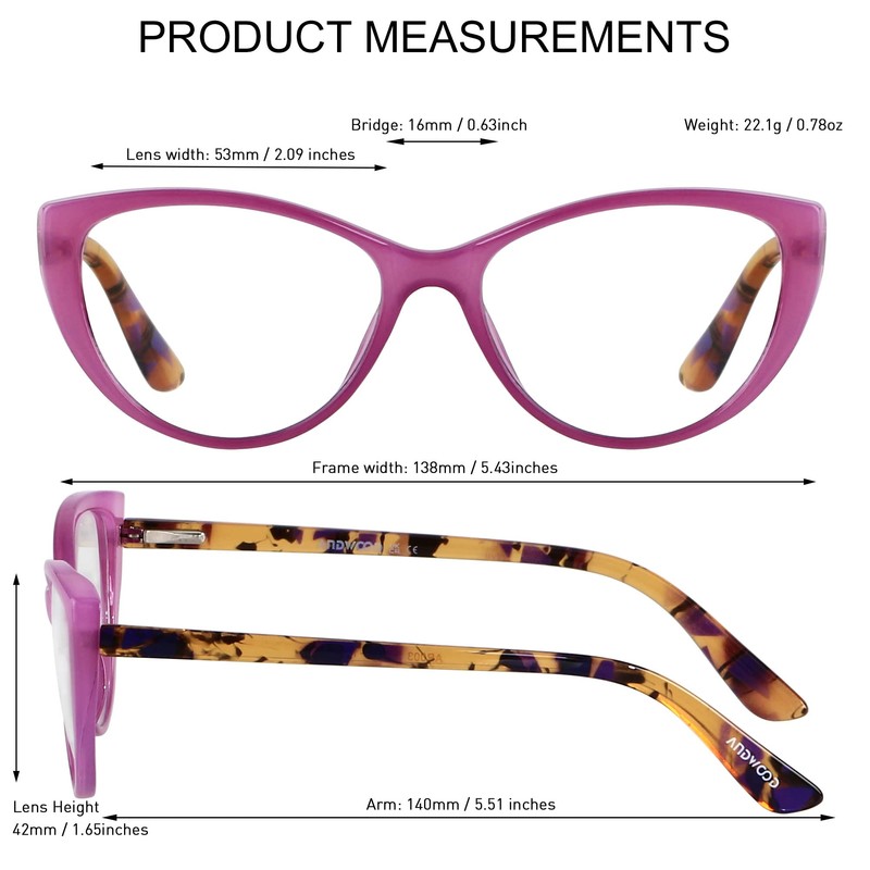 ANDWOOD Blue Light Blocking Glasses Women Bluelight Blocker Computer Cateye Clear Reading Cat Eye Eyeglasses Frame Purple