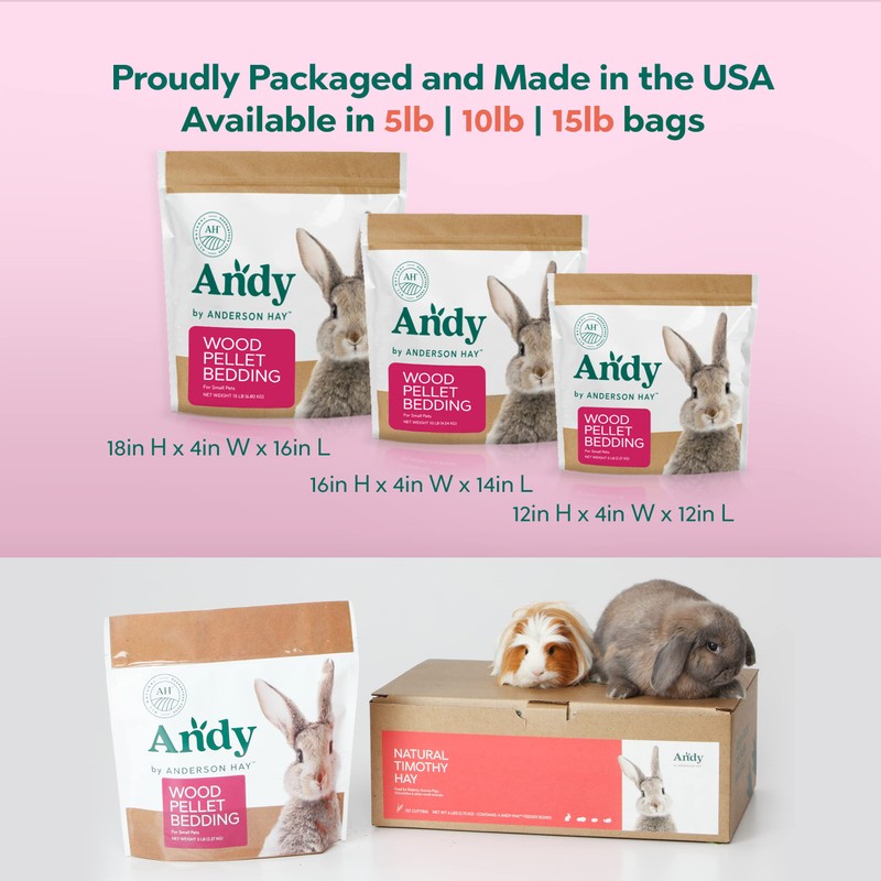 Andy Wood Pellet Bedding, 15 lb Bag, Premium Pine Pellets for Rabbits & Guinea Pig Bedding, Small Pets, Hamster, & Rabbit Litter