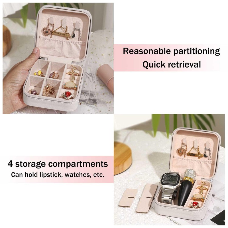 - 1. Mini size (10*10*5cm) is designed for travel and daily commuting. It can be easily put into a carry-on bag, luggage compartment or pocket, saving space while avoiding jewelry squeezing and deformation.