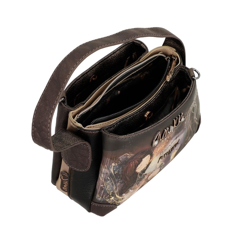 Anekke Dreamverse Shoulder Bag with Shoulder Bag, Multiple Compartments Shoulder Bag, Shoulder Bag, 23/15/11 cm, Accessories and Accessories for Women, Multi-Colour, dark brown