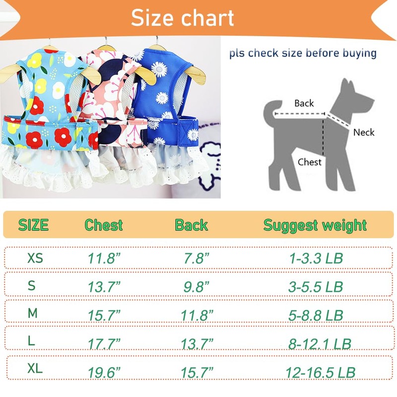 - [ Adorable design]: White daisy pattern printed on the dog dress harnesses in dark blue and decorated with same color Bow tie on the waist make your pet more elegant and stylish in this dog princess dress