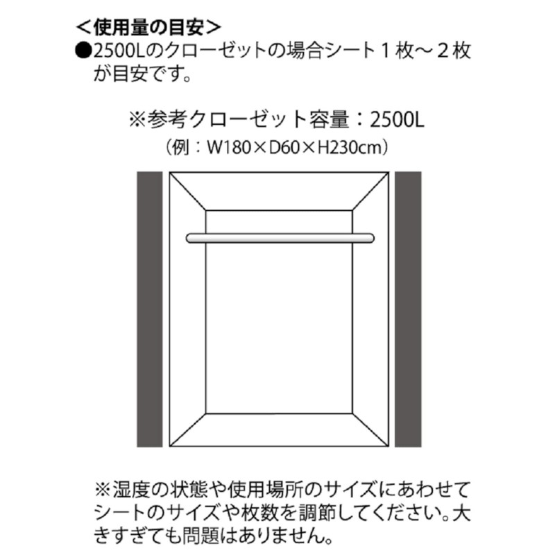 - Suggested use: 1 to 2 sheets per 2,500L closet