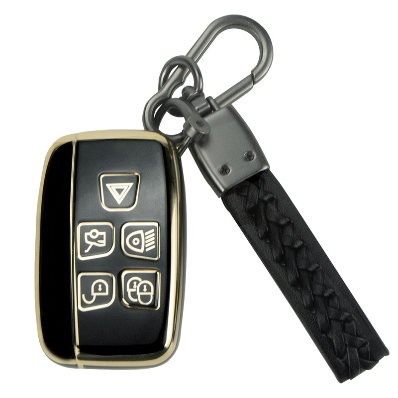 Anevios Car Key Case with Key Fob 5 Buttons TUP Compatible with Land Rover LR4 Range Rover Sport Evoque Jaguar XF XE XJ XJL E-Pace F-pace Key Cover Protective Case, black
