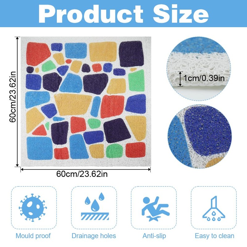 Anevios Shower Mat Non-Slip 60 x 60 cm Bath Mat Non-Slip Mat Shower Non-Slip Mat Bath Mat PVC Loofah Shower Mats with Drainage Holes Bath Mat for Wet Areas Quick Drying Soft Comfort