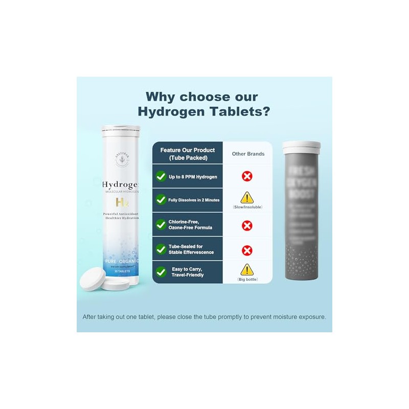 - TUBE-SEALED, TRAVEL-READY & CLEAN FORMULA C Our tube-sealed design locks in freshness and prevents premature reactions with moisturedelivering stable effervescence every time. Free from chlorine, ozone, and artificial additives, this is a cleaner, safer choice. The compact moisture-proof tube makes it perfect for daily use at home, at the gym, or on the goa true hydrogen water tablets upgrade from bulky bottles and weak dissolving brands.