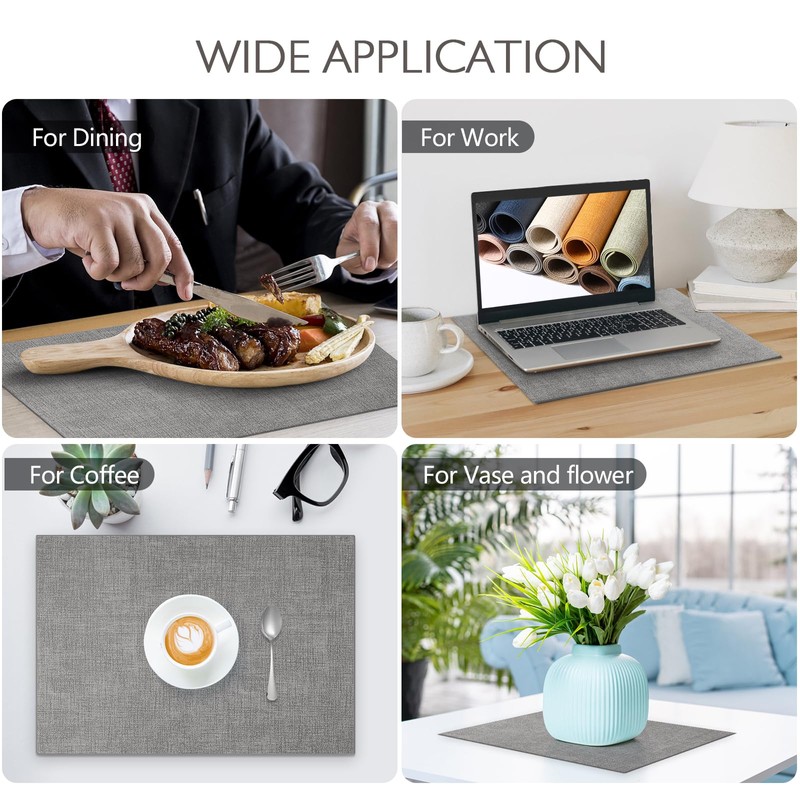 • MULTIPURPOSE AND WIDE APPLICATION - With their classic large rectangular design and multiple color options, our placemats are versatile and suitable for any occasion, from casual family dinners to formal holiday gatherings. These placemats are perfect for indoor and outdoor use, making them the ideal choice for any setting.They are multipurpose that can be used as dinning table placemats, countertop mat, laptop and mouse pad etc.