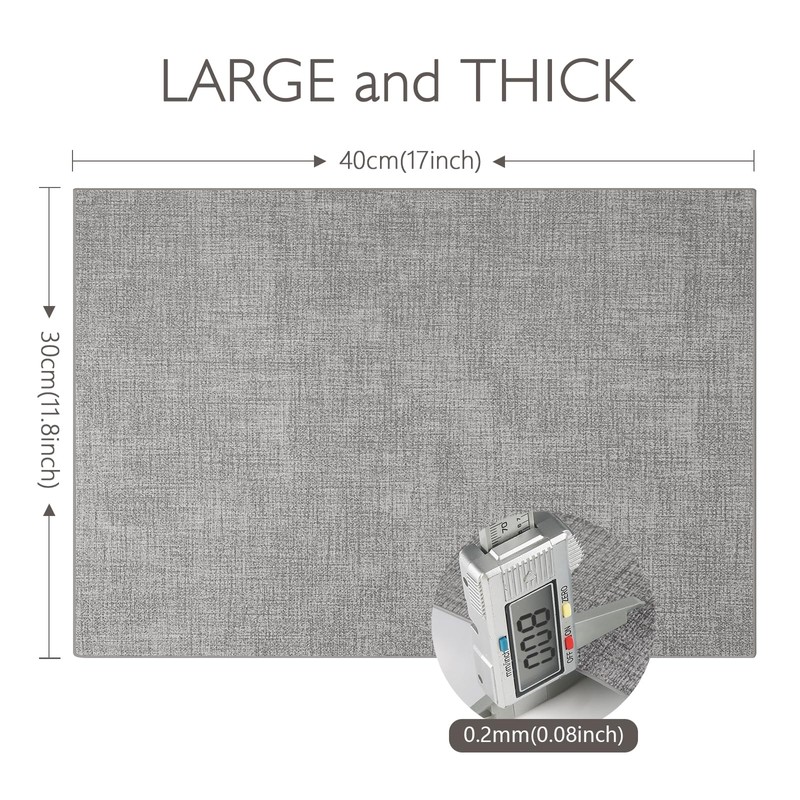 • OUBLE SIDED & THICKED MATEIRAL - Our placemats feature a double-sided thickened design with a linen pattern texture that not only improves slip resistance and provides heat insulation up to 212°F but also makes them waterproof and stain-proof. These placemats are easy to clean and maintain, ensuring that they look as good as new even after multiple uses.