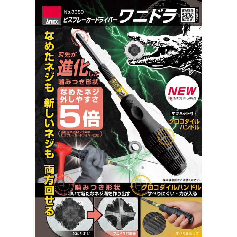 ANEX Wanidora No.3980 Combination Screwdriver and Extractor with Textured Han...