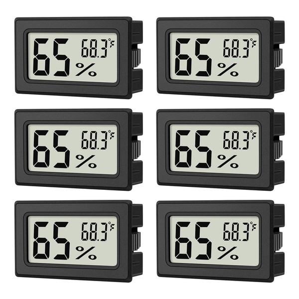 6-Pack Mini Hygrometer Indoor Humidity Meter, Mini Digital Thermometer Humidity Gauge Meter, Indoor Thermometer Hygrometer Monitor Fahrenheit (℉) for Reptile Thermostat, Jars Reptile, Fridge