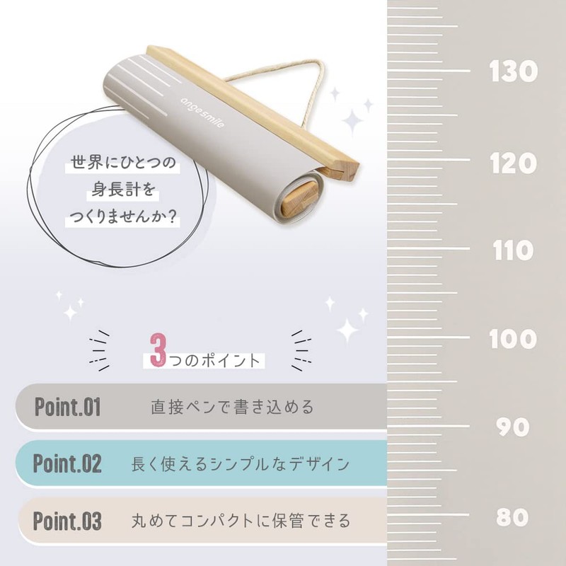 Ange Smile Kids Measuring Measures, Wall Hanging, Writable with Pen, Height Scale, Growth Records, Rolled, Compact Storage, Beige