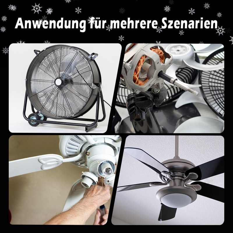 • Capacity is usually related to the size of the fan, 16 inch general 1.5UF, 12-14 inch general 1.2UF, 8-10 general 1UF, ceiling fan is 2-3UF, hood is usually 4UF. (If you do not know the size of the floor fan; desk fan wall fan small fan is recommended to use 1.5UF, ceiling fan with 2.5UF, because a slightly larger capacity speed will be faster).