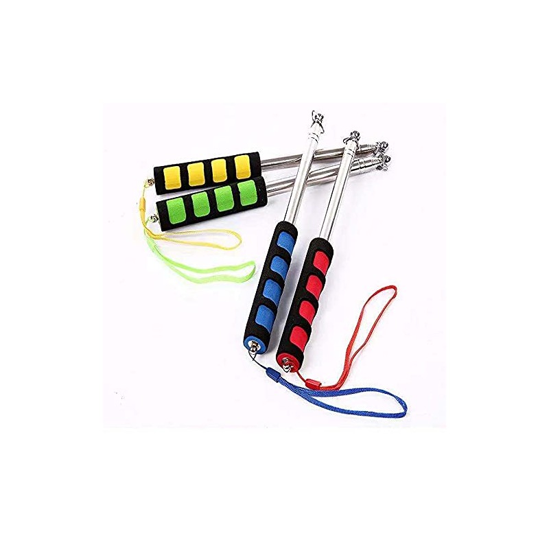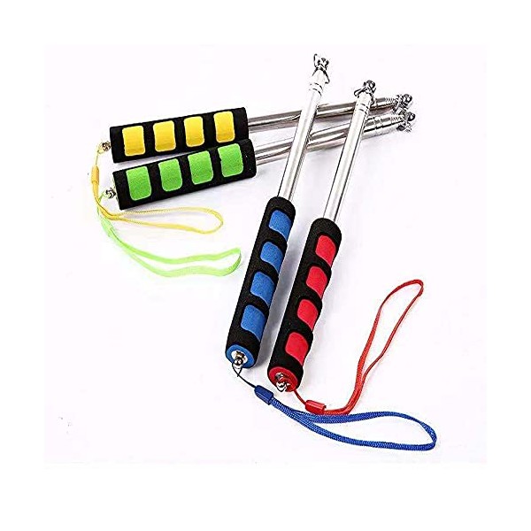 Angeer 4 Pcs/Set Telescopic Flagpole Portable Stainless Steel Extendable Handheld with Sponge Grip Teaching Pointer for Tour Guides (Red+Yellow+Blue+Green)