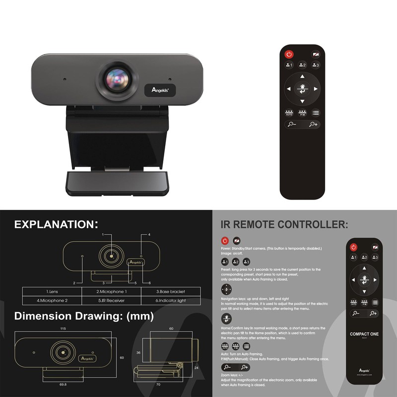 Angekis Compact One Ultra 4K HD Streaming Webcam,Camera with AI Function, 4X Digital Zoom, and 2 Built-in Microphones. Lnfrared Remote Control. for Zoom/Skype/Teams, Conferencing and Video Calling.